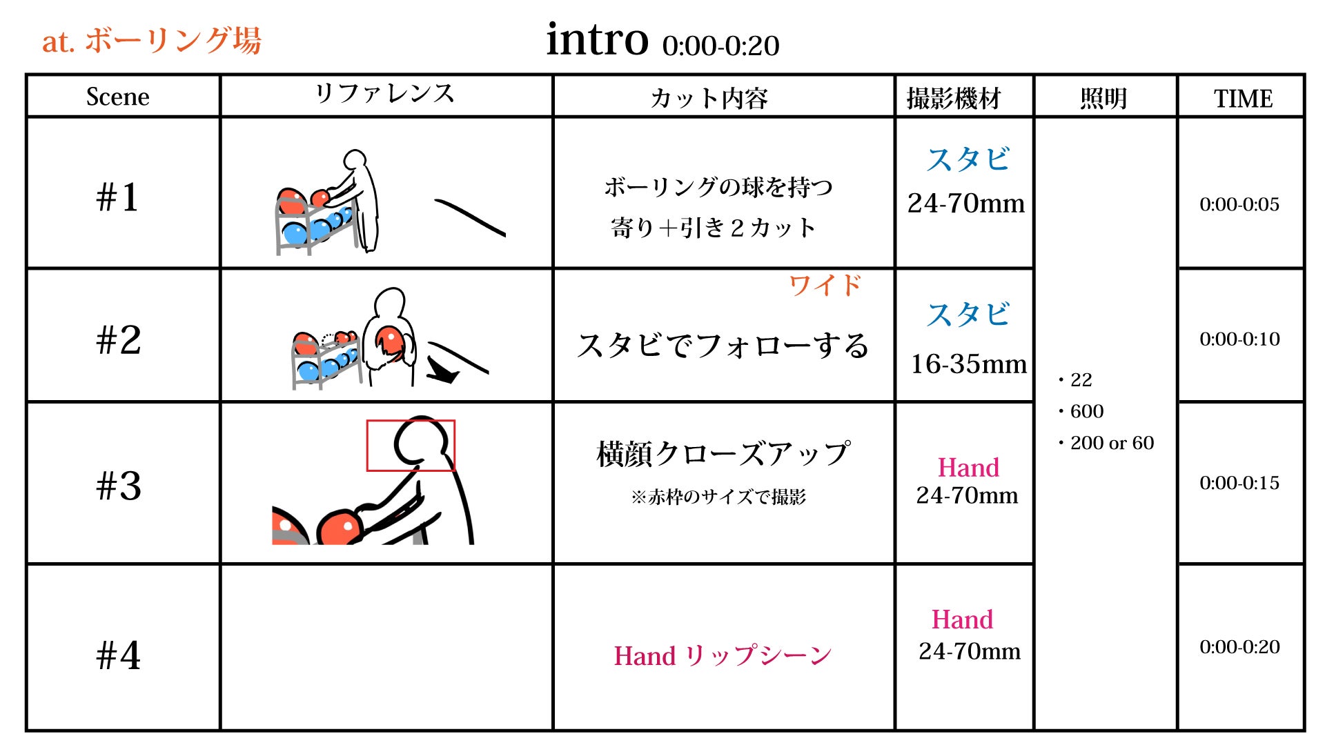 絵だけでは情報量が足りなければ、どのシーンで誰が映っているのかを描くとさらに親切な資料になります!