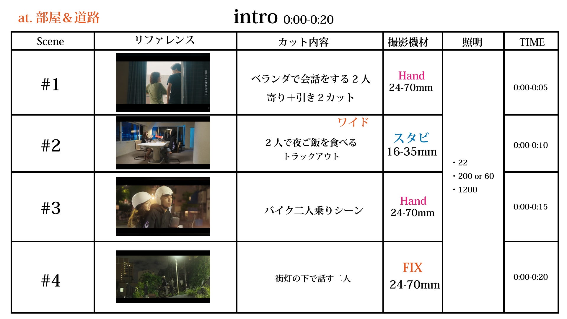 MV の場合はイントロの映像の説明から始まり、A メロ、 B メロ、サビと資料が進んでいきます。